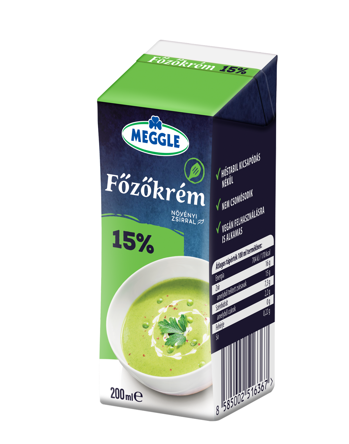 A legújabb 200 ml kiszerelésű Meggle főzőkrém egy növényi alapú termék, amely könnyed alternatívája a hagyományos, állati eredetű tejszínnek.
